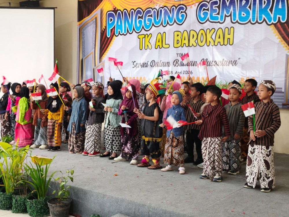 Sleman - Suasana penuh keceriaan dan nuansa budaya mewarnai kegiatan Panggung Gembira dalam rangka syawalan TK Al Barokah yang digelar di Resto Taman Pringsewu, Sabtu (18/4/2026). Acara yang mengusung tema “Serasi dalam Balutan Nusantara” ini menjadi ajang mempererat silaturahmi sekaligus menampilkan kreativitas anak sejak usia dini.